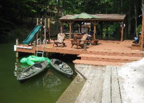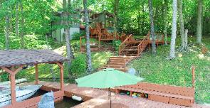 Lake Anna Virginia Vacation Rental Home Description: A Saturday to Saturday, weekly, Lake Anna vacation rental home- Serenity at its best! This charming direct lake front vacation rental home on the public side of Lake Anna is the one to visit. Relax on almost 2 acres of woods in the small sub-division of Childs Cove. The 250' waterfront shore line is just waiting for fun and memories to happen. This home has 2 boat slips**, a jet-ski lift, large sun deck with a slide to splash into the water, a beach area to wade your feet in the water and outside show to rinse off the sand babies. It is close to the Lake Anna State Park, a marina and the only waterfront restaurant on the lake. (Approx 4 miles for each) The cove is deep water and quiet, perfect for that guest who likes to throw a fishing line. It is located in an enforced "No Wake" cove which makes it great for swimming and water fun, but just past the bouyes, you are out in open water on the main section of the lake to catch some speed. The interior of the vacation home boasts 3 well appointed bedrooms in which 2 have direct waterfront views and king size beds. There are 2 full baths. The loft is a great kid’s zone for sleeping and entertaining. You will find up there a king and twin bed as well as play station. The comfy living room also has a direct water view of Lake Anna with a gracious deck that is accessed from the living room or either waterfront bedroom. The lake front water view galley kitchen and dining area is well stocked for entertaining. Brand new stainless steel dish washer. New furniture through out most of the vacation home. Televisions and DVD or VCR in each bedroom as well as the loft and living room. Satellite in the 3 bedrooms and living room and for 2010 Wi-Fi for Prime Season guests. Really a place that offers that "Home Away From Home" feeling. All that this lovely Lake Anna vacation rental home get away is missing is you and your family! **** Note: 1 uncovered non electric boat slip on dock and jet ski lift is available to guests and there is also a place for 1 boat tie up on the dock. Beach area from shore is 2-3 feet deep and is entered by levels of long steps from decking - A great area for kids to play and swim. Water at docks edge is about 10' deep. Great area to fish off the dock as well. (Note water levels do change some depending on time of year) Small fire pit with benches looking out to lake to toast marsh mellows as well as large 6 burner Weber gas grill with side burner for outside meals. Deck on dock has large picnic table, umbrella and wonderful views of the main lake. Great to star gaze at night from. There are many levels of decking with lots of patio furniture on each level to relax and entertain on. Truly a home to make memories with the family. Vacation Rental Amenities: Bedroom 1 - King Pillow, Crib & changing table, TV, Ceiling fans (Direct waterfront view and off main deck of home) Bedroom 2 – King, TV, Ceiling fans (Direct waterfront view and off main deck of home) Bedroom 3 – Queen, TV, Ceiling Fans, Portable Crib and bed rails (View of Woods) Loft – Twin bed and King bed, TV for Play Station Living Room - TV and Ceiling Fan (Home sleeps maximum 8 guests, which includes children - Max 4 adults -great for 2 families) All beds supplied with mattress covers, blanket, matelasse, quilt, premium pillows (usually 4 per bed) - linens, towels and beds prepared- included with cleaning fee-each bedroom is provided with satellite television and equipped with either a dvd or vcr. 2 full baths Bathroom 1 - Toilet, 2 Sinks, Combination Tub/Shower Bathroom 2 - Toilet, 2 Sinks, Over sized Shower with 2 shower heads (Large tub size stall) * Trash Removal for Prime Season (When available) * Activities-Guide/maps * Energy Star touch pad air-conditioning system * Alarm-Clocks in each bedroom * Ceiling-Fans in each bedroom, living room, and dining room * Central heating * Hair-Dryers in each bathroom * Laundry-Soap * Linens/Towels & beds prepared - (Included with cleaning fee) * Local - Activities-Guide * Local-Maps * Paper-Towels * Restaurant - Dining-Guide * Soaps-Basic/Shampoo * Telephone * Toilet-Paper * Blender, hand mixer and crock pot * Clothes washer/dryer full size * Coffee maker * Cooking utensils * Brand new stainless steel dish washer * Weber Gas Grill (Large 6 burner with side burner) * Iron & board * Kitchenette * Lobster/Crab-Pot * Microwave * Oven * Refrigerator * Spices * Stove Top Burners * Toaster and toaster oven * Child's highchair & booster high chair for dining area * Dining room with seating for 8 guests at dinner table * Books/magazines * CD/DVD player (5) * Games-Kids * Radio * Satellite & Wi-Fi during prime season * Stereo system * Toys-Kids * TVs (5) * VCRS (2) * VideoGame/Play Station * Video Games * Balcony/Multiple Wood Decks and built in benches * (2) Picnic Tables one on deck over lake and other on main deck with a serving table * Walkway - to - Water (We have seating on every deck level) * 10 garden chairs, 2 patio tables, hammock & swing chairs * Sandy beach area near water's edge - tiki lights & outside lighting * 2 boat slips & jet ski lift (Guests given use 1 non electric boat slip + side dock tie up) * Boat tie up available off dock with bumpers/fenders * Nice deep water cove on the public side * Children welcome * Non smoking * Pets not allowed * Camp fire pit for roasting marsh mellows * Two patio umbrellas for porch tables * Outside shower off dock * Slide on dock to splash into the lake (No diving off slide permitted) * 2 ladders in lake to dock for easy exit of lake * Boat launch for "put in" and "take out" of boat at Childs Cove common area near by - Note: No trailers or vehicles can be left there - Must bring trailer and vehicle back to home Also Note: Most boats allowed at our dock fit the launch area, but if yours wouldn't, it can still be launched at the Lake Anna State Park or Hunter's Landing which are public launches and are only about 4 miles from o